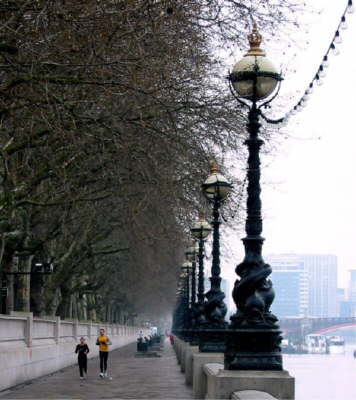 Joggen entlang der Themse ist offensichtlich ein beliebter Muntermacher.